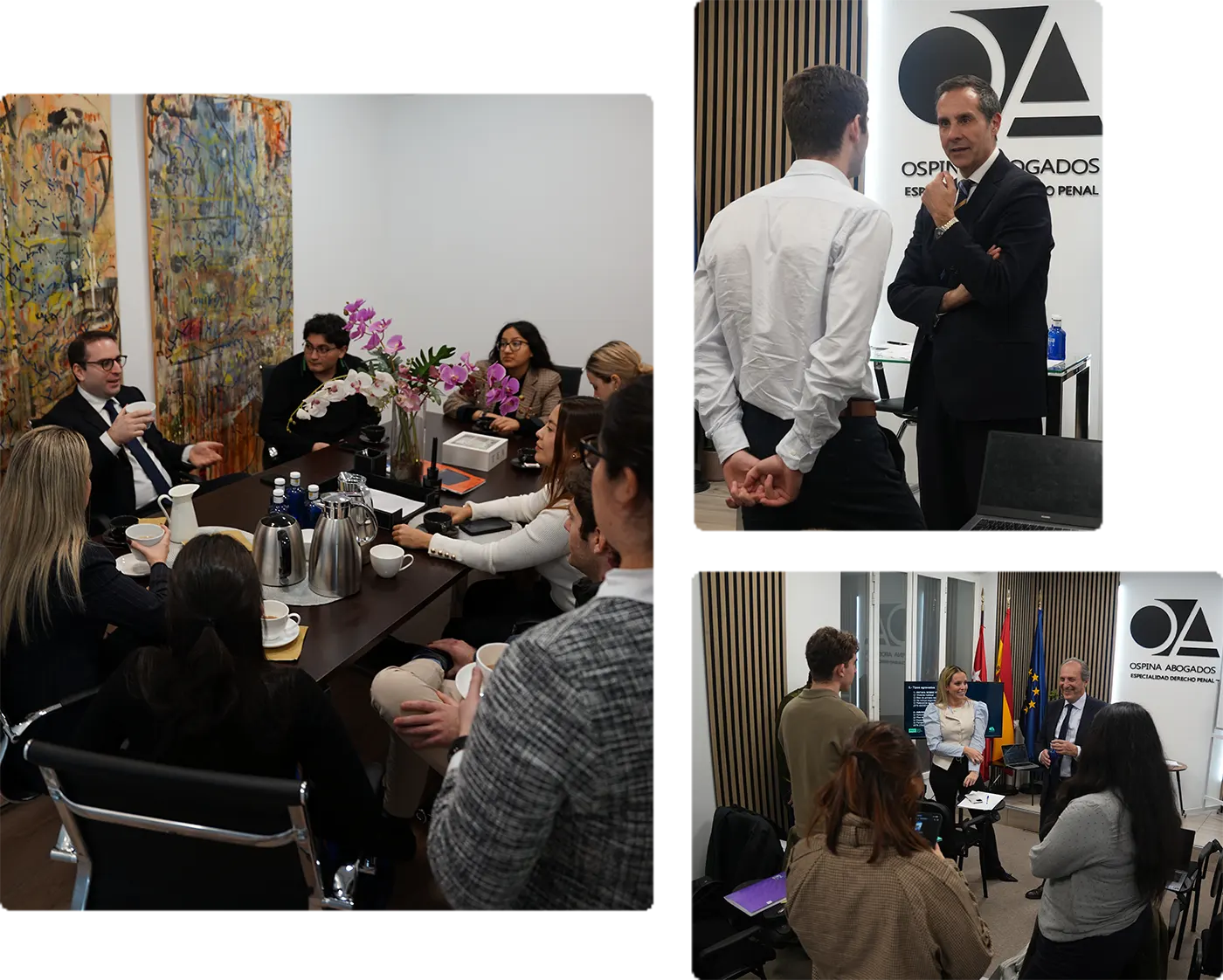 Visitas institucionales y mentoría directa con referentes como los socios de Ospina Abogados.